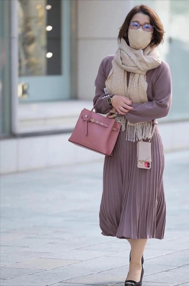 50岁以后的姐妹,想要穿得优雅不老气,可以试试这样搭:用黑色的羊毛衫搭配同色中长款百褶裙,灵动的裙摆设计让黑色调的组合,看起来优雅减龄。